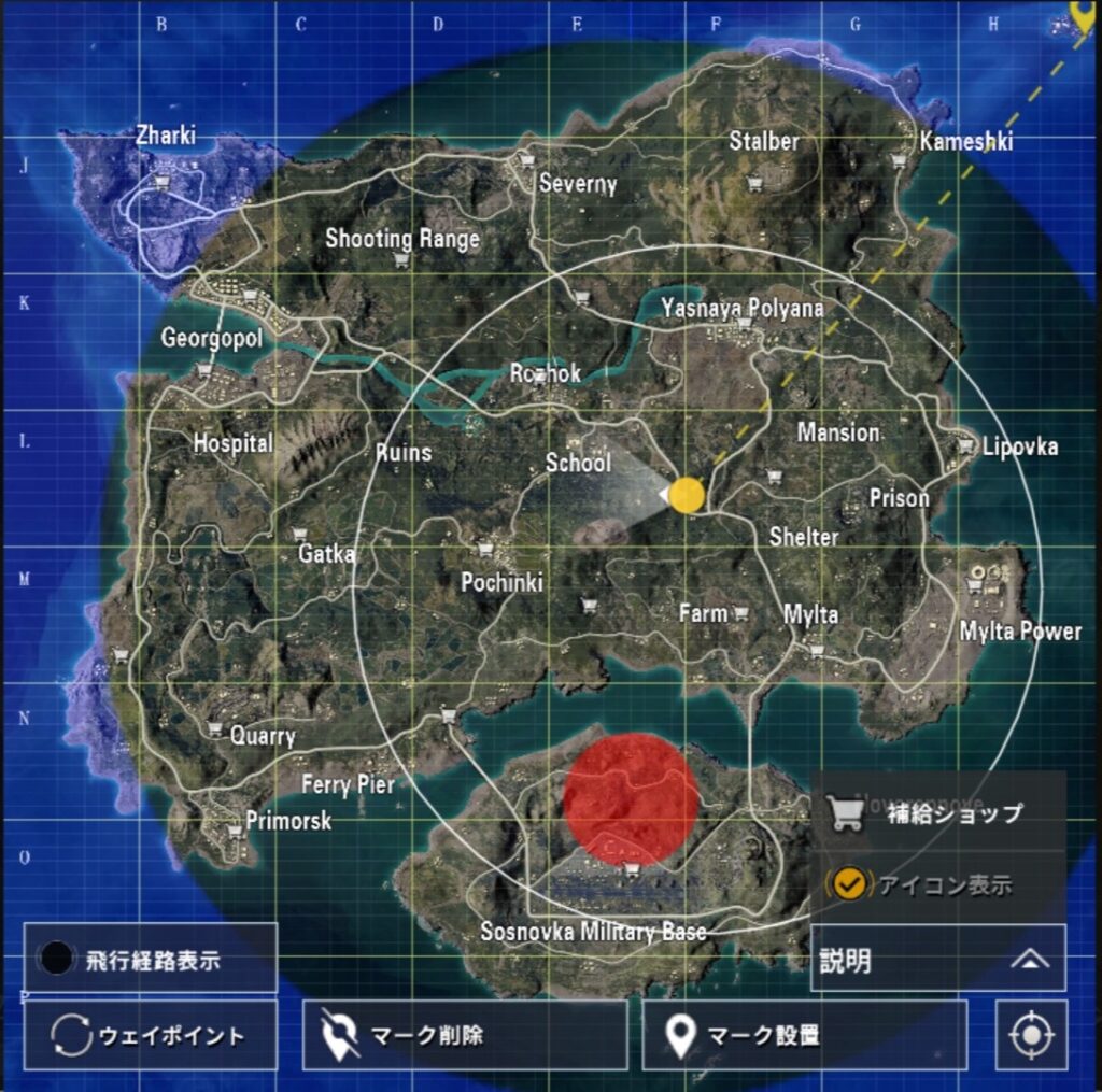 Schoolなどの場所は建物や落ちているアイテムも多いですが、他のプレイヤーも多くなります。