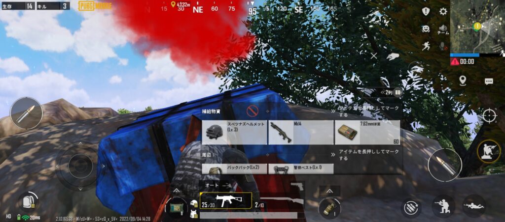 赤い発煙筒で見つけやすいですが、他のプレイヤーにも見つかりやすいので注意しながら急いで回収しましょう。