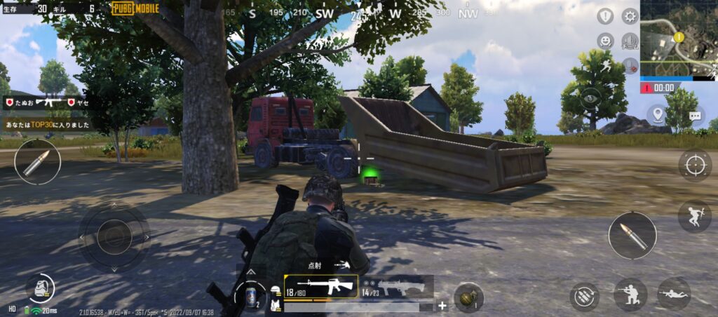 トラックの荷台に入り、しゃがんだり伏せたりするとbotに見つかっても弾が当たりません。